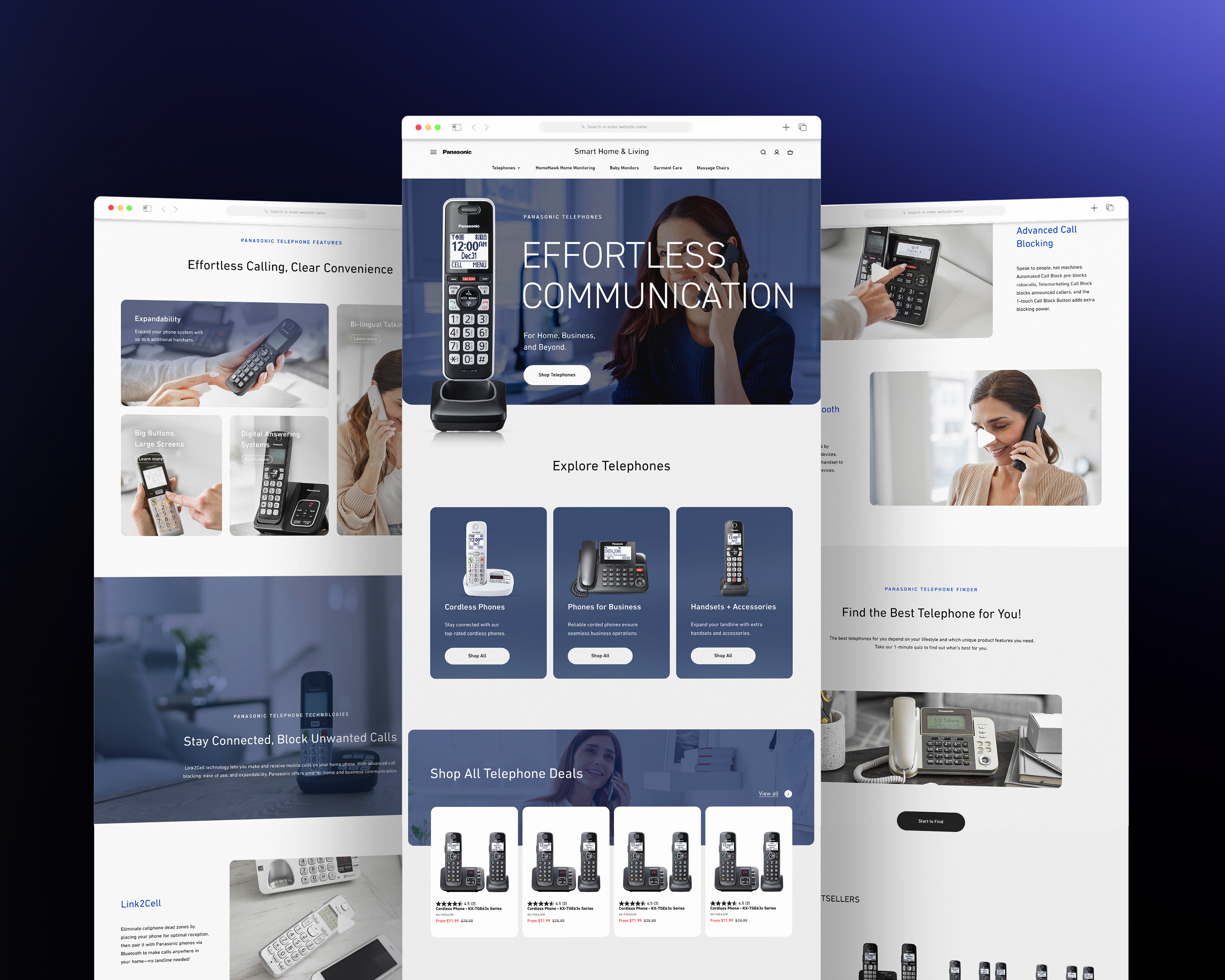 Panasonic asked us to help give their websites a fresh new look. The main goal was to update the UI across their different pages. The real challenge was making sure each section felt right for the specific people using it—since someone looking for a home phone has different needs than someone looking for professional gear—all while keeping a consistent global UX structure.